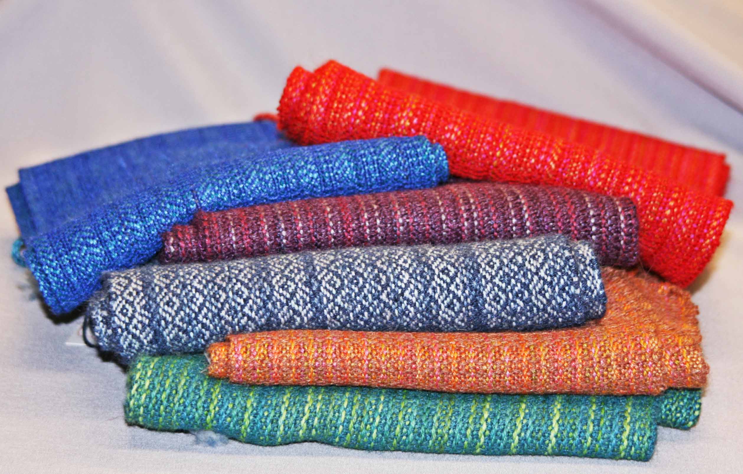 These cozy scarves are woven from lovely yarns which are a blend of silk-wool or silk-alpaca or both. They are light but very warm and soft to the touch. They may be ordered through my Etsy shop or through the "contact us" button.